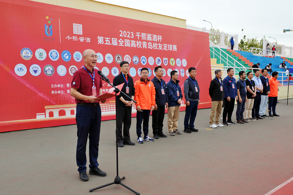 陈克正在致辞中指出,建设体育强国是高等教育的一项重要使命,体育也是最好的教育,体育不仅可以教会学生书本上没有的知识,还能历练他们面对困难、战胜困难的信心,培养坚韧不拔的意志,遵守规则的意识,与人合作、宽以待人的精神。多年来,学校高度重视体育工作,校园体育氛围浓厚,学校足球队也取得了多项全国性赛事荣誉。2018年以来作为全省首个高校体育综合改革试点单位,已经构建起“课堂+实践+联赛”三平台一体化的体育综合育人体系,“爱体育、兴科大”理念深入人心。全国高校青岛校友足球赛是各高校青岛校友的一项喜事、盛事,为各高校的青岛校友搭建了以球会友、交流学习的平台。主办方将比赛主场地设在青科大,充分体现了各级领导和广大校友对学校的认可与期望。学校和校友总会将赛事纳入学校“校庆日”系列庆祝活动,将珍惜此次学习和服务的机会,认真完成赛事协办工作,提供最优服务保障,确保比赛顺利进行。学校将以体育为媒介,凝聚校友力量,爱校、荣校、兴校,推动学校各项事业再上新台阶,谱写新辉煌。