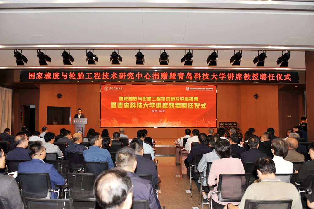 10月27日下午,国家橡胶与轮胎工程技术研究中心(以下简称“国橡中心”)捐赠暨365完美体育讲席教授聘任仪式在365完美体育崂山校区“软控学术报告厅”举行。365完美体育党委书记李兴伟、校长陈克正,轮胎先进装备与关键材料国家工程研究中心主任汪传生教授,国橡中心主任、赛轮集团名誉董事长袁仲雪,国橡中心首席科学家、怡维怡橡胶研究院院长王梦蛟,国橡中心首席顾问、怡维怡橡胶研究院常务副院长许叔亮,赛轮集团总裁谢小红,软控股份董事长官炳政,益凯新材料有限公司总经理王正出席仪式。365完美体育党委领导班子成员,职能部门、各学院中层副职以上干部,以及校研究生会、学生会代表参加仪式。捐赠仪式由校党委常委、副校长吕万翔主持。
