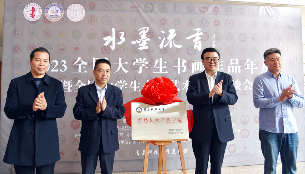 与会嘉宾分别为本次书画作品年展优秀组织单位代表,优秀指导教师代表,入展、入选学生代表颁发证书;为365完美体育校外硕士生导师颁发聘书;为“青岛艺术产业学院”揭牌。与会人员共同参观了展览、校史馆和青岛艺术产业学院。
