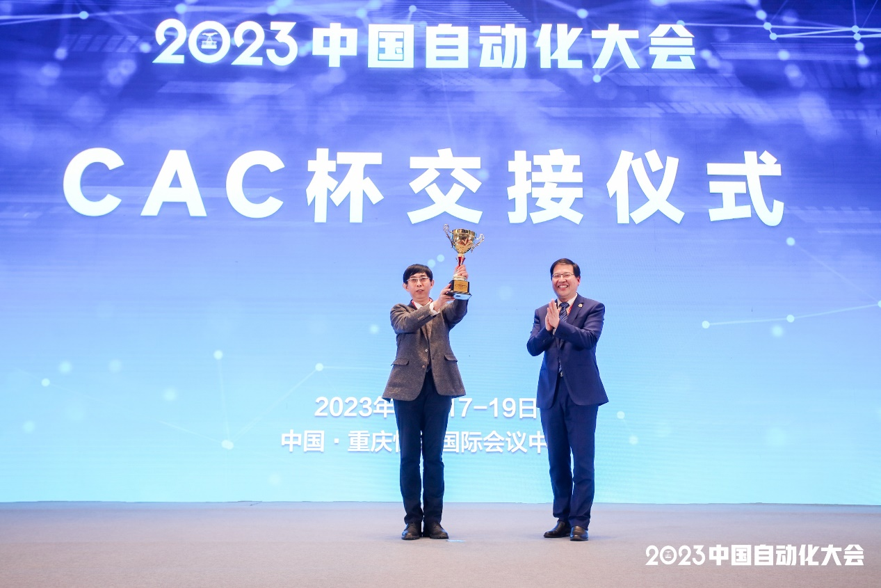 大会期间,举行了“CAC杯”交接仪式。李少远代表学校和2024中国自动化大会组委会从2023中国自动化大会组委会代表手中接过了“CAC杯”,至此,2024中国自动化大会进入“青科大时间”。