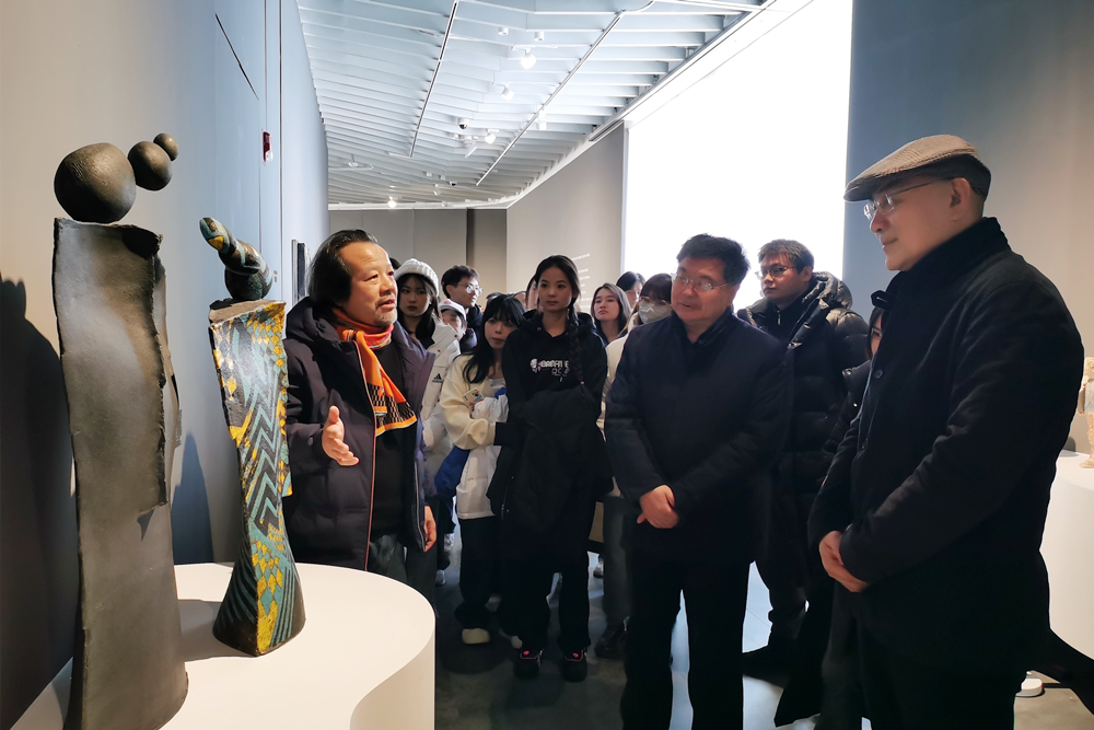 12月1日,校长陈克正走进艺术学院实践教学课堂,与艺术学院30余名师生共同参加“瞬间与永恒——中国当代陶艺邀请展”,观摩实践教学活动,与师生互动交流。党委(校长)办公室、财务处、艺术学院负责同志陪同观摩。