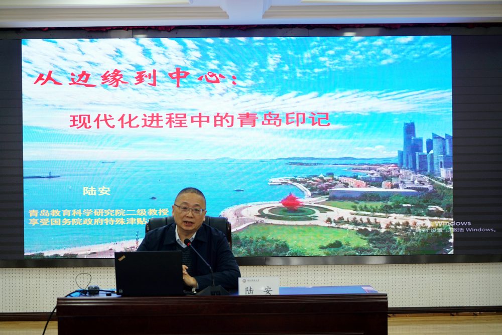 专家报告环节由学校马克思主义学院院长、教授曹胜主持。青岛市教育科学研究院二级教授、享受国务院政府特殊津贴专家、青岛市历史学会副会长陆安以《从边缘到中心:现代化进程中的青岛印迹》为题,青岛农业大学马克思主义学院党总支书记、教授、青岛市历史学会副会长修彩波以《正确理解和大力推进中国式现代化》为题作专家报告。