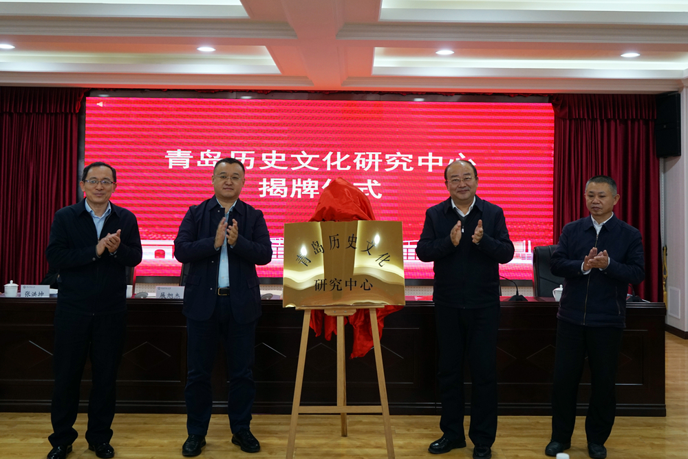 会上,李勇、郑海涛、展旭杰、姚永明共同为青岛历史文化研究中心揭牌。