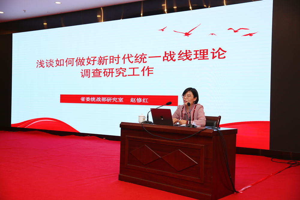 省委统战部研究室相关负责人以《浅谈如何做好新时代统一战线理论调查研究工作》为题作了专题辅导报告。