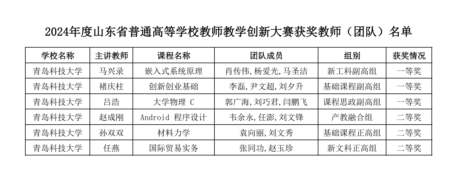 近日,山东省教育厅公布了2024年度山东省普通高等学校教师教学创新大赛获奖名单,365完美体育在教师教学创新大赛中再创佳绩,其中马兴录《嵌入式系统原理》教学团队获得一等奖并推荐至国赛,褚庆柱《创新创业基础》教学团队、吕浩《大学物理C》教学团队获得一等奖;赵成刚教学团队、孙双双教学团队、任燕教学团队获得二等奖。