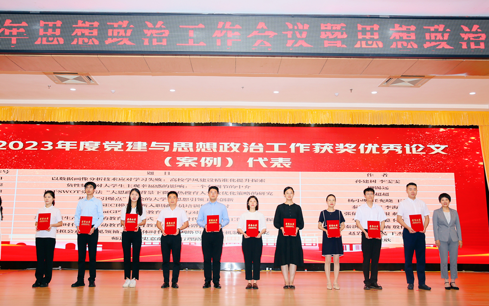党委常委、统战部部长秦姣为学校党建与思想政治工作优秀论文(案例)获奖代表颁奖。