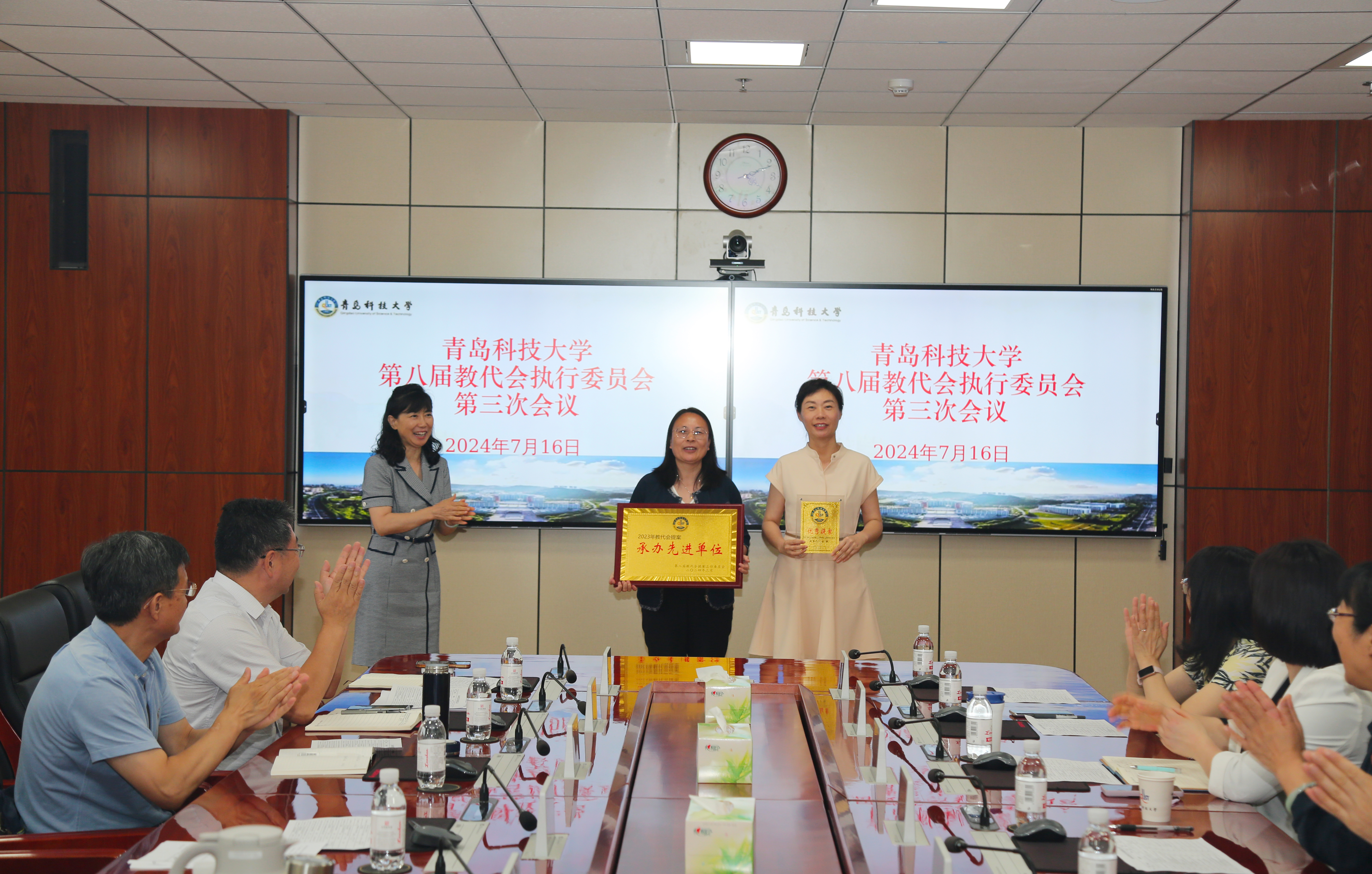 会上,对第八届教代会执行委员会副主任进行了调整,并对第八届教代会2023年优秀提案、提案承办先进单位进行了表彰,沈文青向获奖个人及单位颁发荣誉证书。