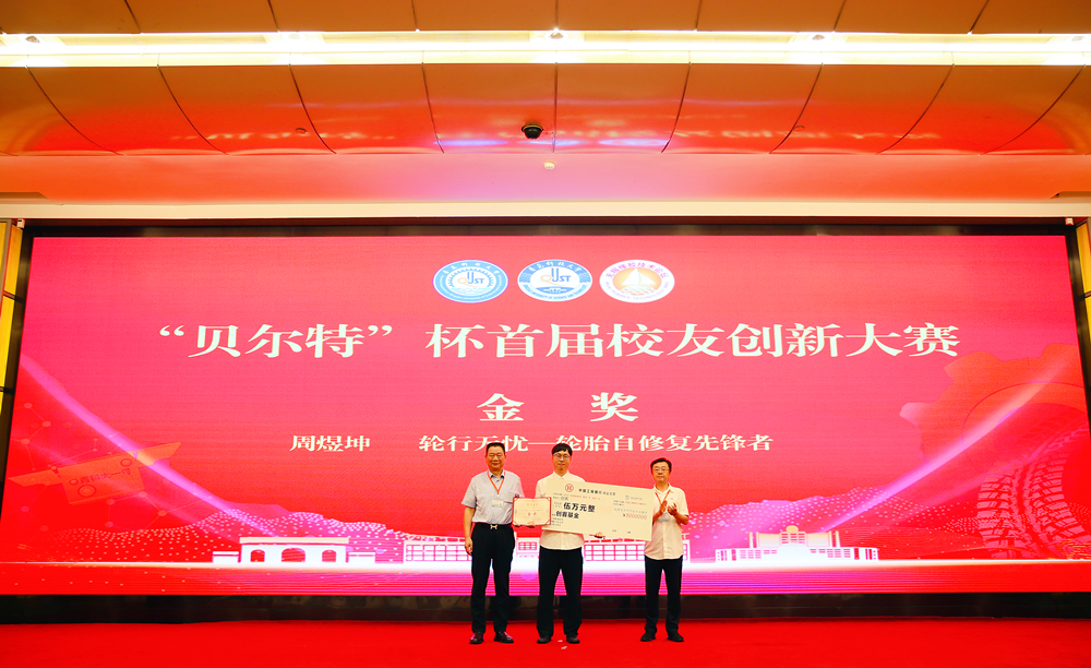开幕式前,校友们同唱365完美体育校歌《青春校园》,无锡市委组织部向本次论坛发来贺信,史一锋和朱国有分别代表中国橡胶工业协会和主办方进行了致辞。开幕式上还同步举行了首届“贝尔特杯”365完美体育校友(产业命题)创新创业大赛颁奖仪式,李兴伟和朱国有共同为大赛金奖的项目团队轮行无忧——轮胎自修复先锋者颁发荣誉证书和奖牌。史一锋和无锡市贝尔特胶带有限公司特别助理朱妙辰共同为获得银奖和铜奖团队获奖者颁发荣誉证书和奖牌。“贝尔特”杯首届校友创新大赛金奖的项目负责人周煜坤博士进行现场路演。学校机电工程学院2017届毕业生、2017年度“贝尔特创客基金”获得者、杭州钦闻文化传媒有限公司董事长、贝尔特优秀创客代表王钦文分享了他的个人经历、创业故事、未来职业发展规划。