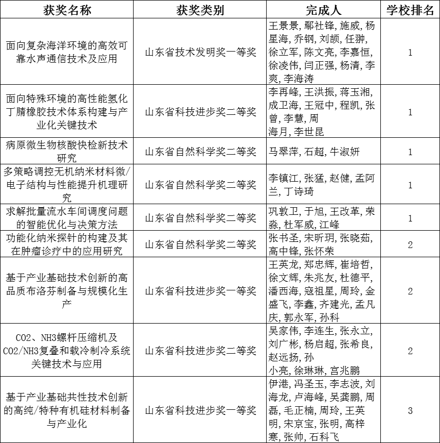 365完美体育共有9项成果获得2023年度山东省科学技术奖。9项成果中365完美体育作为第一完成单位的项目共5项,获批数量较2022年度增长4项,获奖数量和质量取得新突破,其中王景景教授团队的“面向复杂海洋环境的高效可靠水声通信技术及应用”项目荣获山东省技术发明奖一等奖。