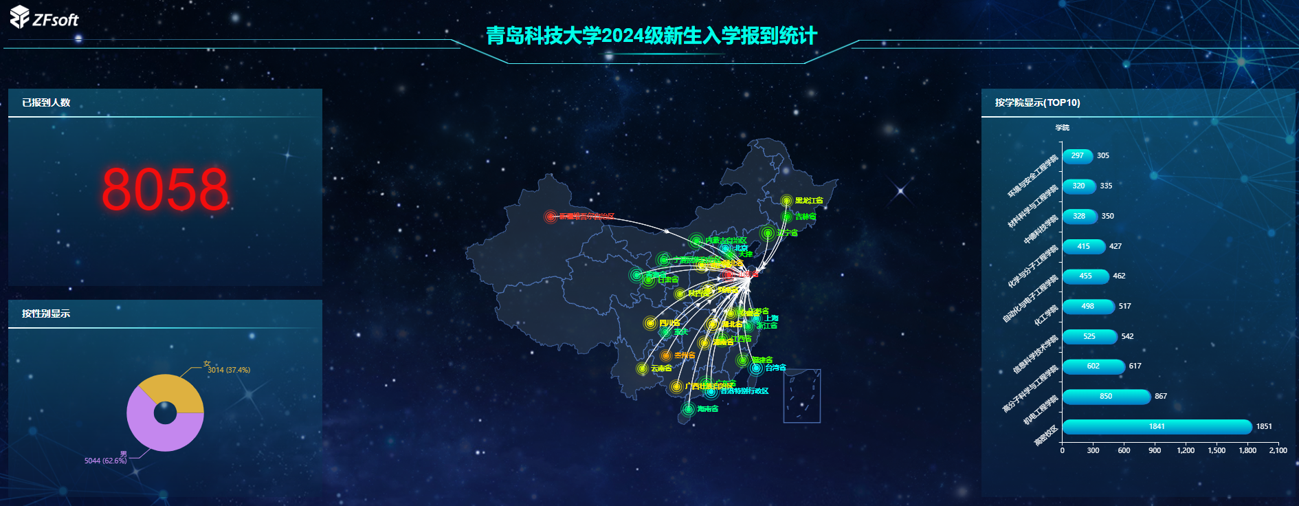 学生处持续优化“智慧迎新”,提高新生服务网和迎新系统人性化操作,首次实现研究生线上报到,优化简化流程,为新生入校开启快速通道;通过“青科学工”公众号平台提前开展新生安全教育学习和测试,守牢安全底线。开设“绿色通道”,发放“爱心大礼包”,让新生切实感受学校关怀与温暖。