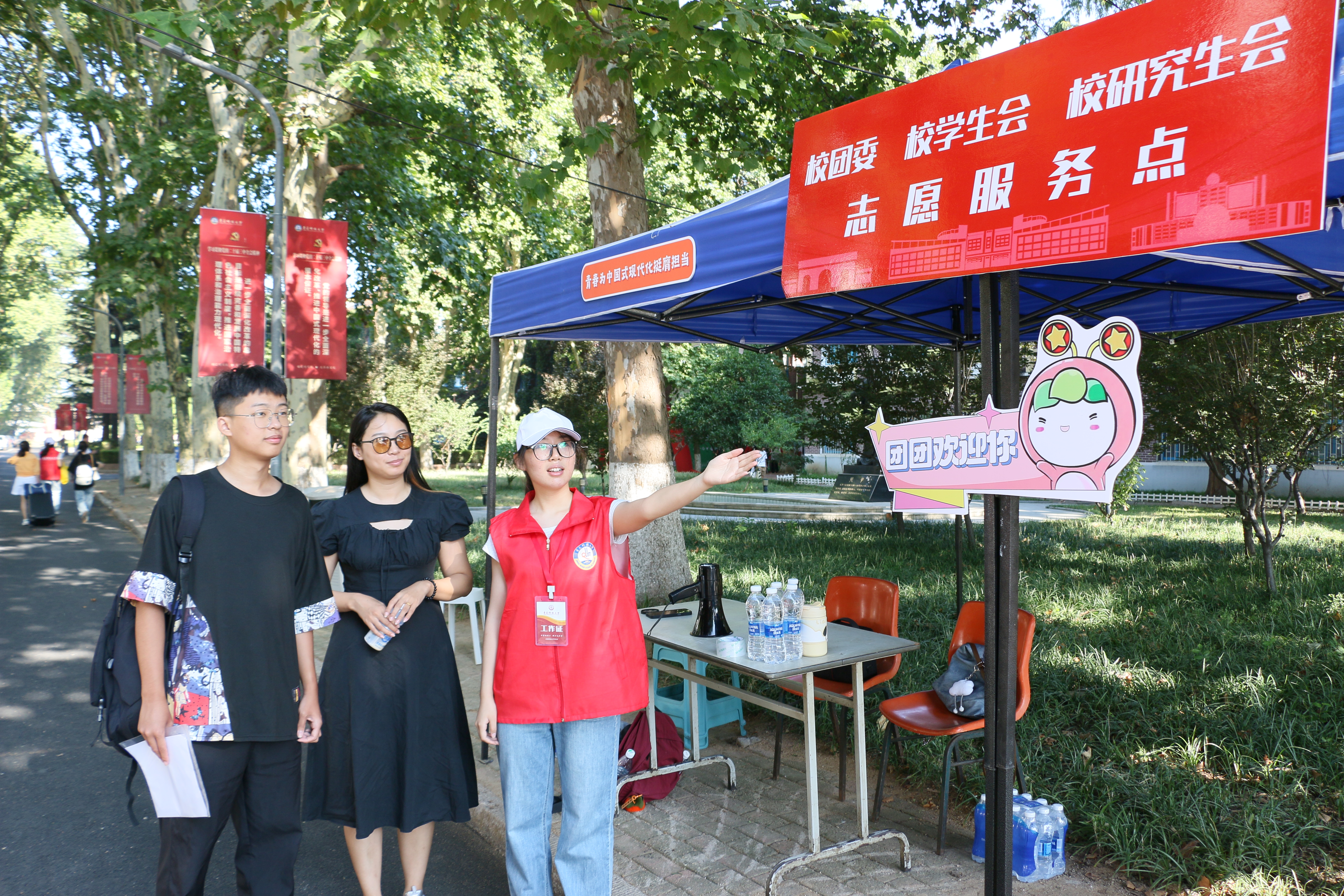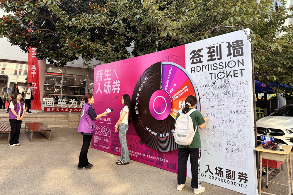 数理学院打造π系场景,制作“数写新篇章理想耀中华”主题喷绘,设置党员先锋岗,为新生上好爱国第一课;以市集形式呈现迎新,开设报到驿站、实践梦工坊等12个趣味“小摊”,设计“蓝色斑马线”展示学院办学标志性成果,“一站式”为学生做好入学服务;迎新过程集合朋辈力量,多场景、精准化帮助新生们更快了解校园环境;为新生定制涵盖思想引领、专业认知、适应衔接、爱校荣校等方面的入学教育朋辈微课,助力新生开启大学生活新篇章。