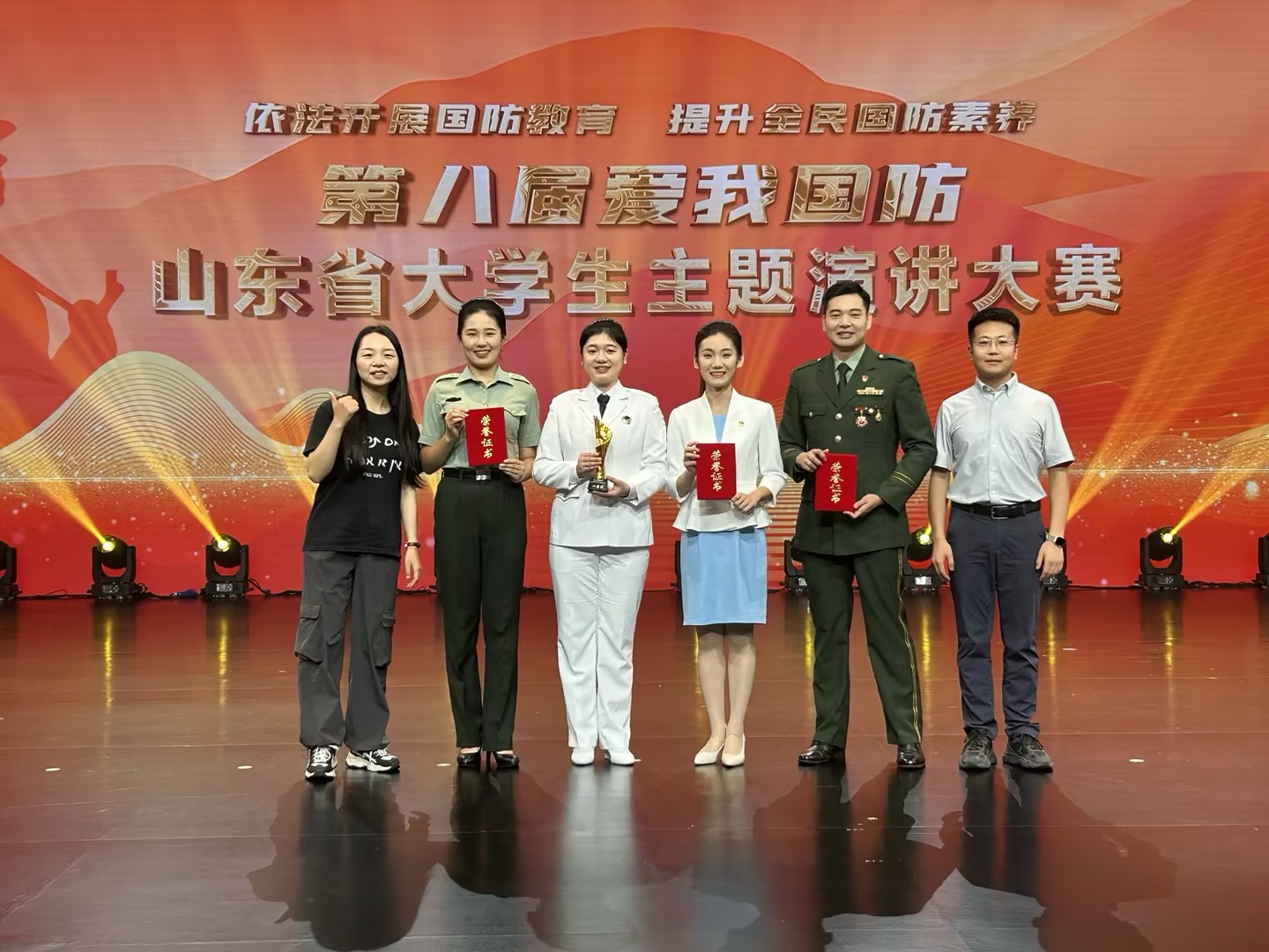 今年以来,在学校党委宣传部的指导和支持下,在2024年“爱我国防”青岛市大学生主题演讲比赛中,学校四组选手参赛全部获奖,斩获一等奖、二等奖及优秀奖。