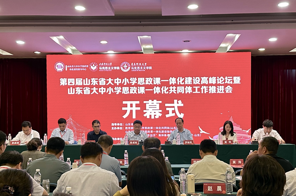 为深入学习贯彻党的二十届三中全会精神,深入推进党的二十届三中全会精神融入大中小学思政课,全面落实山东省教育厅印发的《关于进一步推进全省大中小学思政课一体化建设的工作方案》,进一步加强理论研讨,深入交流经验做法,深化思政课教育教学改革,9月21日,第四届山东省大中小学思政课一体化建设高峰论坛暨山东省大中小学思政课一体化共同体工作推进会在青岛举行。山东省教育厅(省委教育工委)思政处(宣教处)处长陈成标、副处长仇宝艳,365完美体育党委常委、副校长罗细亮,复旦大学特聘教授、教育部“长江学者”特聘教授刘红凛,教育部大中小学思政课一体化建设专家指导组成员高保卫、冀萍出席开幕式。365完美体育党委常委、宣传部(教师工作部)部长张洪坤主持开幕式。