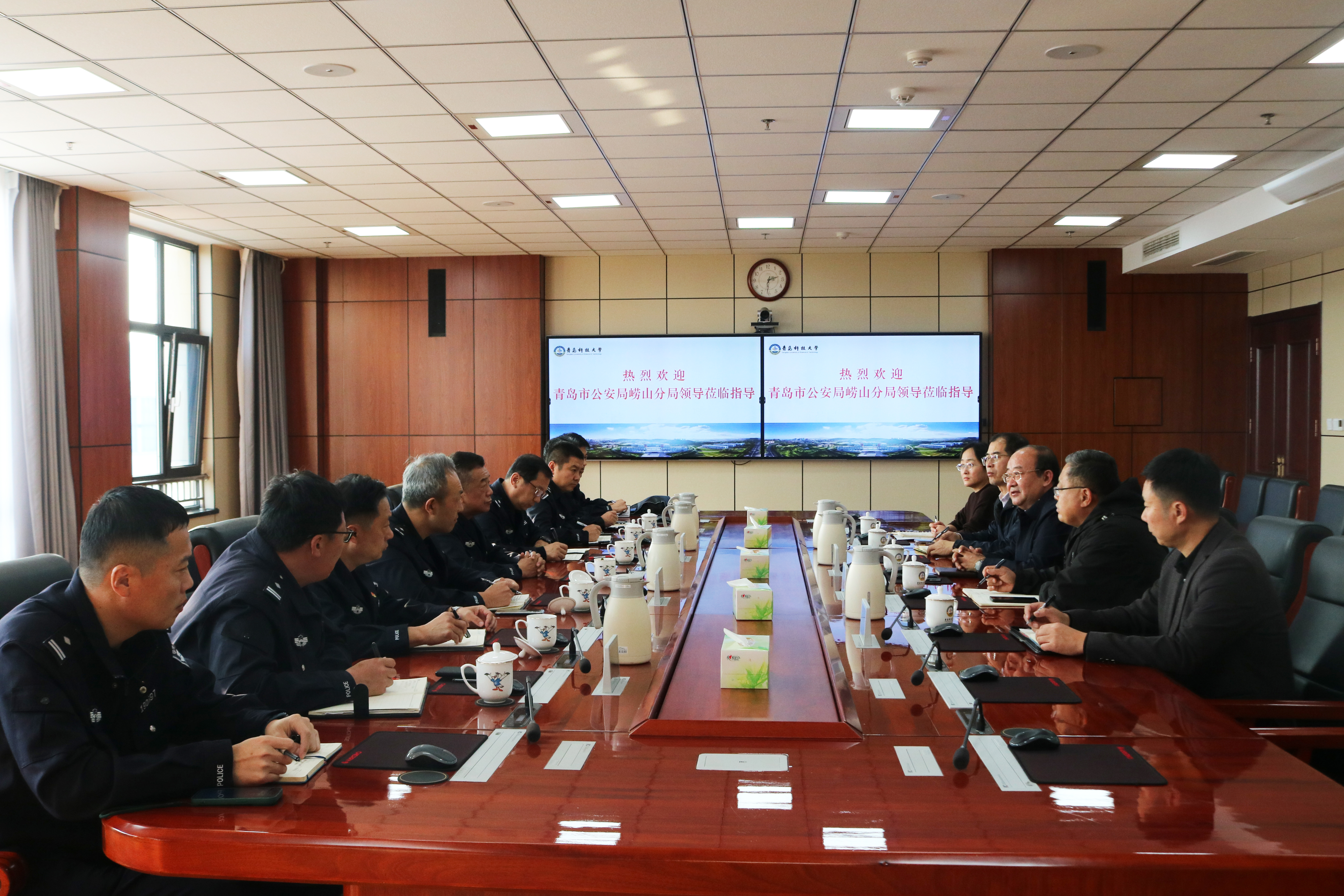 11月20日下午,青岛市公安局崂山分局政委董良君一行来校调研。学校党委副书记李勇出席调研座谈会。