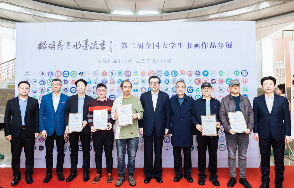开幕式上,丁林介绍了学校的基本情况和学校美育教育相关情况,为年展优秀指导教师颁奖,并参观了大学生书画作品年展。