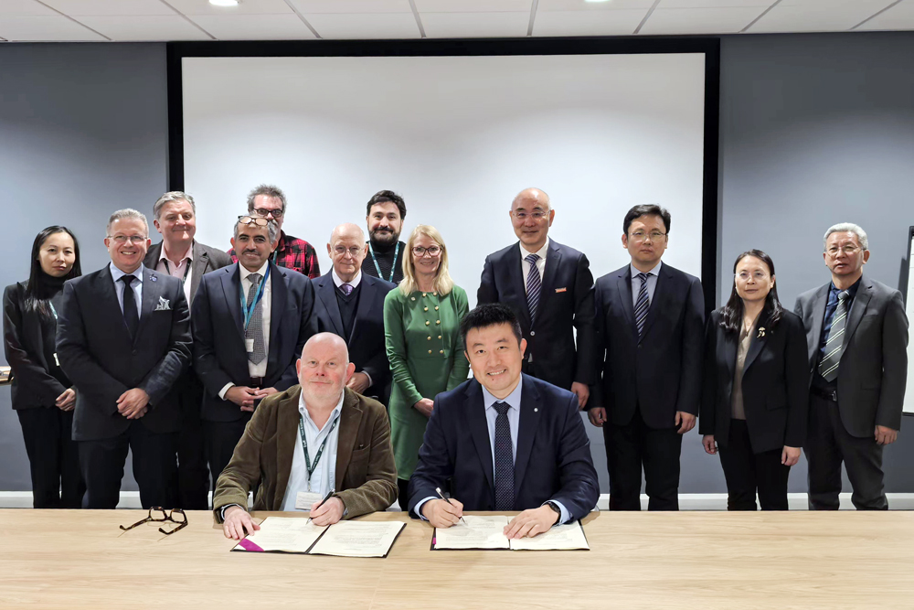 在英国访问期间,代表团与布拉德福德大学校长雪莉·康顿教授、副校长谢里夫·卡米西教授等学校相关负责人进行了座谈,双方签署了学分互认协议。会谈中,双方就推动学科专业领域的科研合作、开展本科双学位联合培养项目及研究生联合培养项目等议题进行了深入探讨。会后,代表团在芬·卡顿·罗斯教授的陪同下,参观了布拉德福德大学的动画专业实验室,并与在该校学习的青科大学生进行了座谈。陈克正向同学们表达了关怀与慰问,并对他们的学习成果给予高度评价。在英国皇家工程院院士、中华人民共和国国际科学技术合作奖获得者菲利普·寇茨教授的引导下,代表团参观了聚合物交叉学科研究中心,探讨了双方在相关领域开展科研合作的可行性。