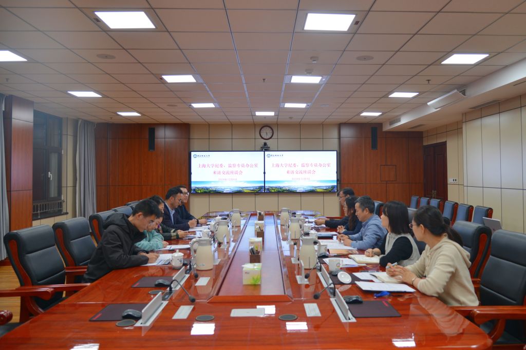12月4日,上海大学纪委副书记滕云一行来校交流纪检监察工作。学校党委常委、纪委书记、省监委派驻监察专员李萍出席座谈会。