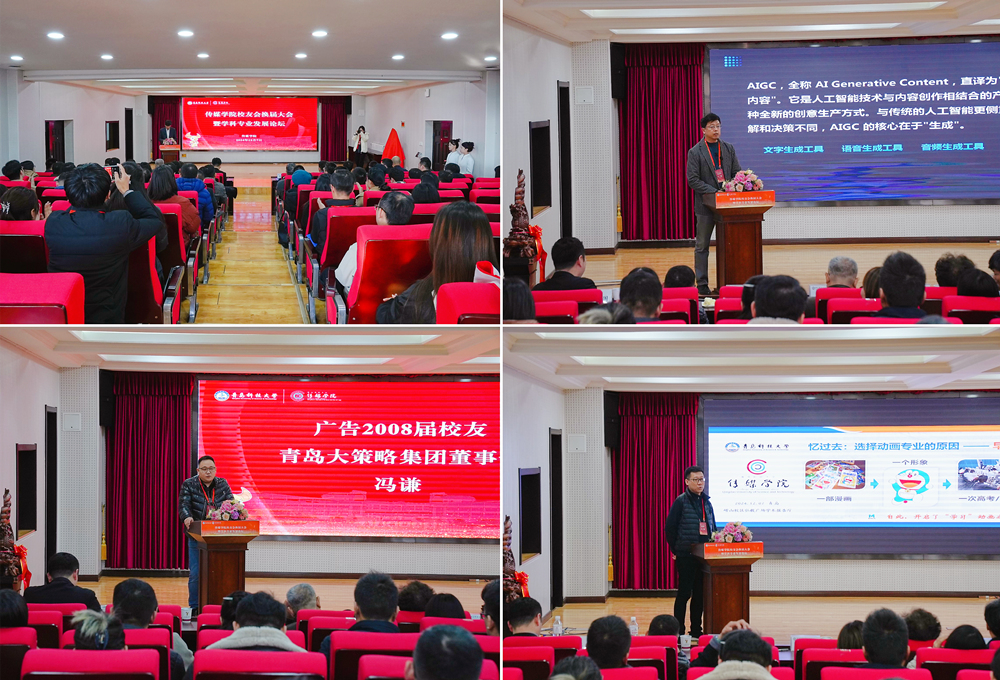 换届大会后,举行了学科专业发展论坛。传媒学院影视与动画系教授宁翔,冯谦,动画12届校友、央视动漫集团企划/产业拓展经理左鹏,从传媒行业动态前沿及学科专业发展角度,分别围绕AIGC人工智能生成应用领域、广告行业就业创业历程、动画行业前沿发展情况等方面进行交流分享,为学院学科专业发展和人才培养提供了宝贵经验和有益思路。