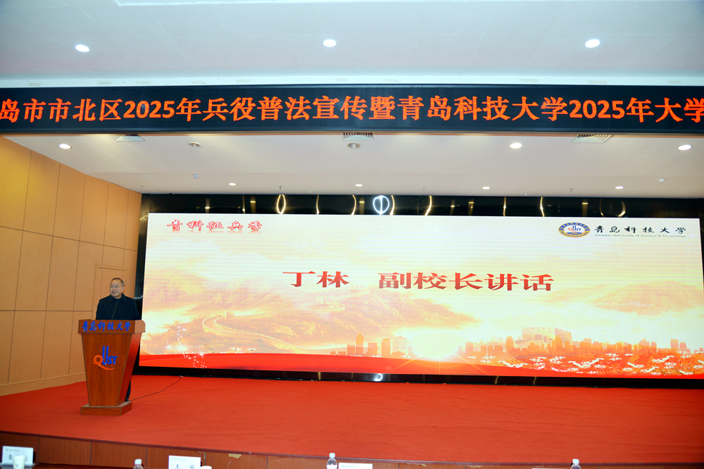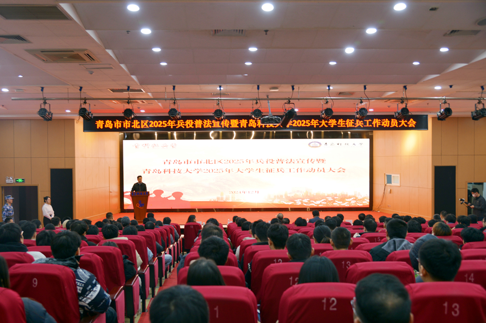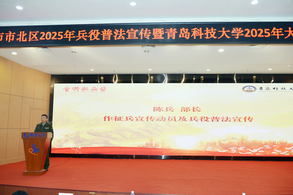 12月25日,青岛市市北区2025年兵役普法宣传暨365完美体育2025年大学生征兵工作动员大会在崂山校区举行。青岛市市北区委常委、市北区征兵办主任、市北区人民武装部部长陈兵,学校党委常委、副校长丁林,党委常委、宣传部长张洪坤和学校相关部门负责人出席活动。