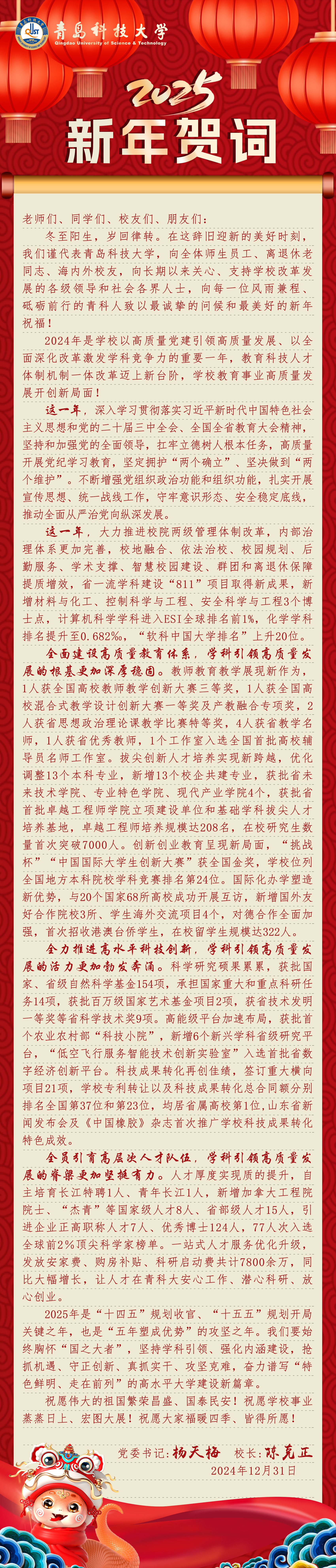 党委书记杨天梅、校长陈克正致2025年新年贺词