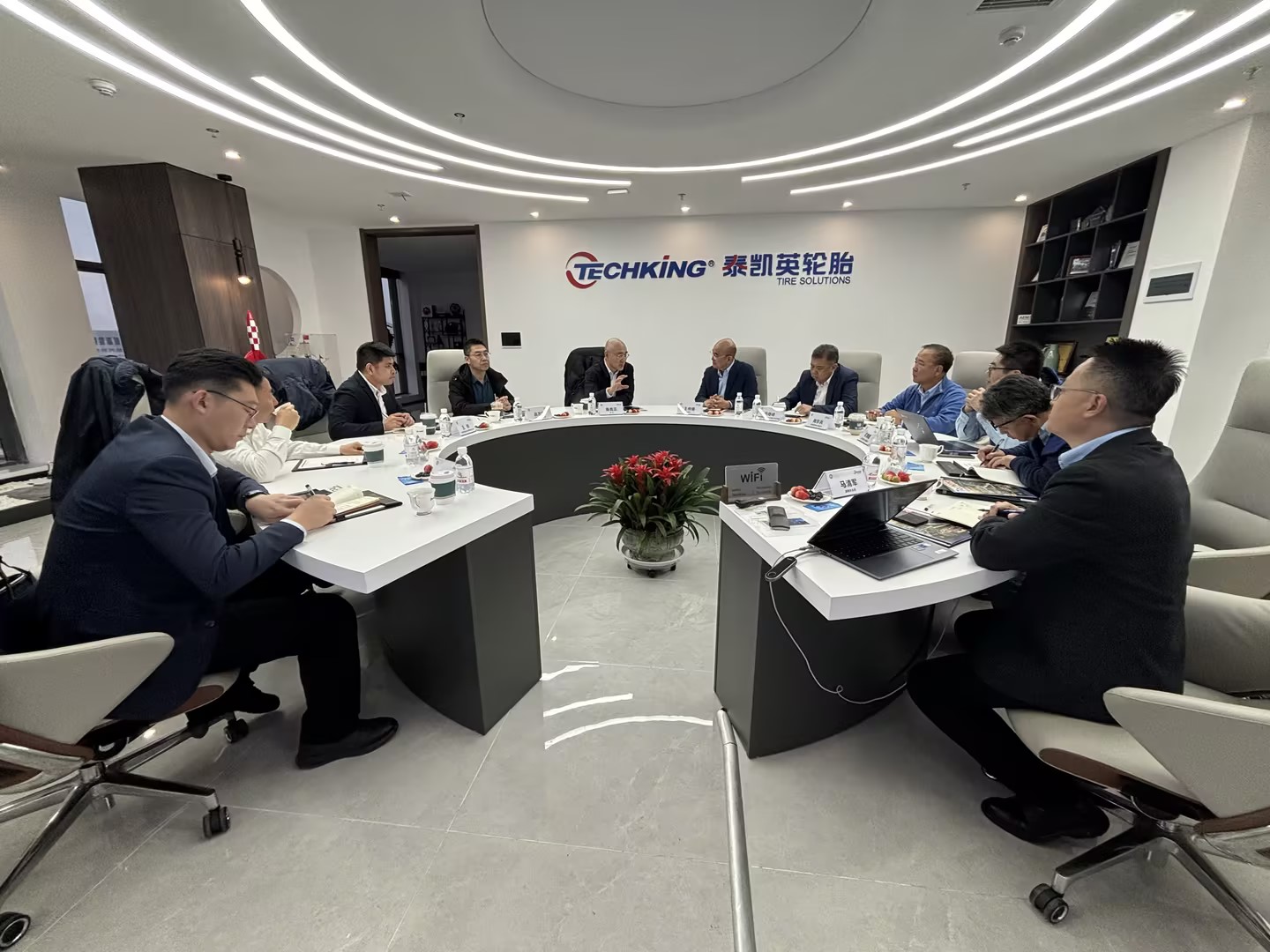 王传铸对陈克正一行的到来表示欢迎,表达了对母校教育培养的感激之情。他分享了泰凯英的发展历程、业务板块、产业布局以及轮胎科技成果的产业化实践。他表示,希望今后与母校在人才培养、橡胶技术攻关、科研平台建设、社会服务等方面更深层次、更多维度的合作交流,共同为轮胎行业高质量发展注入新动能。