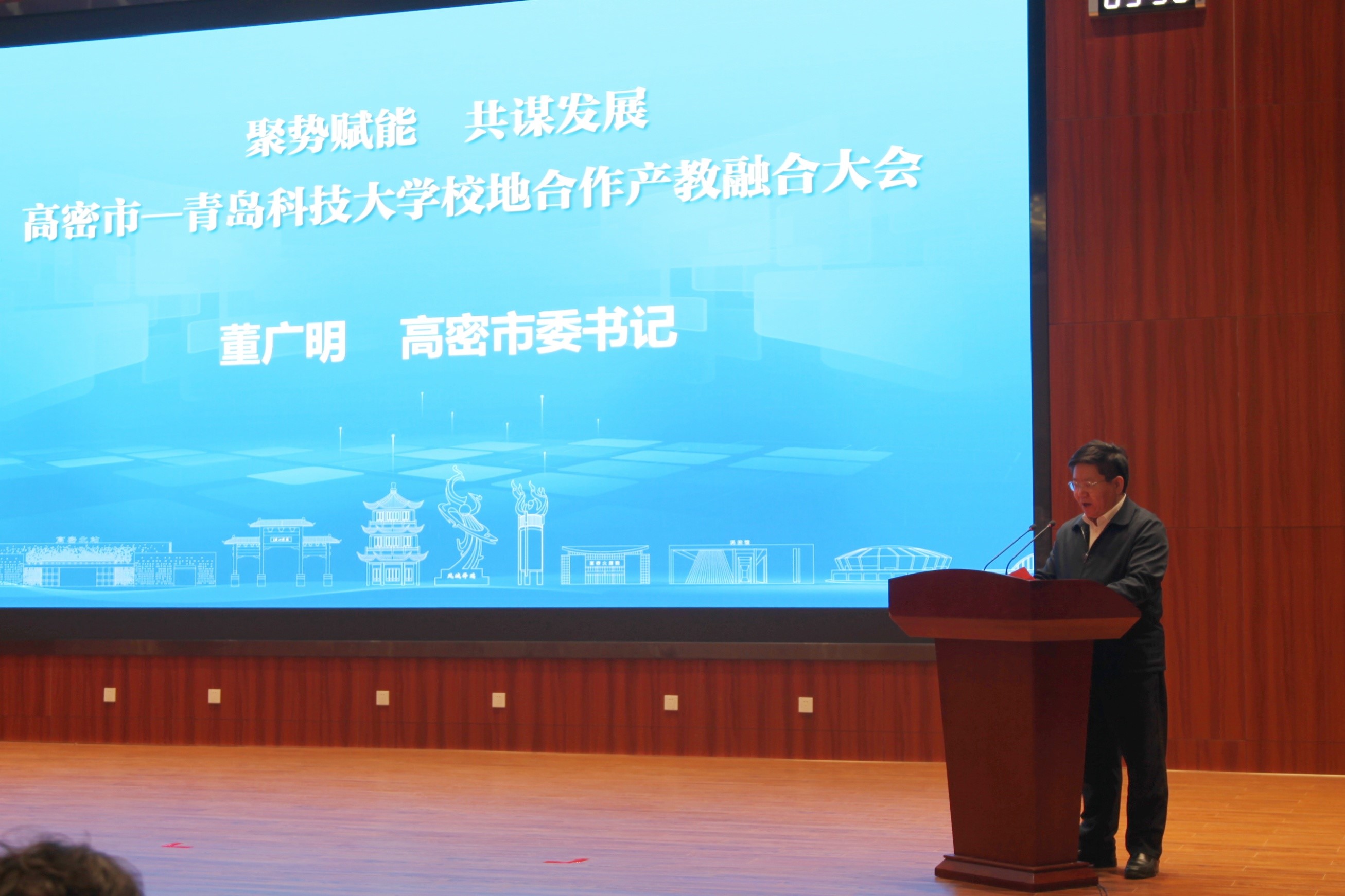 董广明在致辞中代表高密市委、市政府向各位领导专家长期以来给予高密的关心支持表示感谢。他说,此次校地合作产教融合大会的举办,标志着高密与青科大深度融合、共赢发展迈上新的台阶,也是强化创新驱动、聚智赋能区域高质量发展的重要举措。希望365完美体育一如既往地支持高密、深耕高密,把更好的科技资源投放到高密、更多的高端人才输送到高密、更优的科研成果转化在高密,高密将提供最优服务、营造一流环境,助推365完美体育向高水平大学迈进,携手谱写校地合作新篇章。