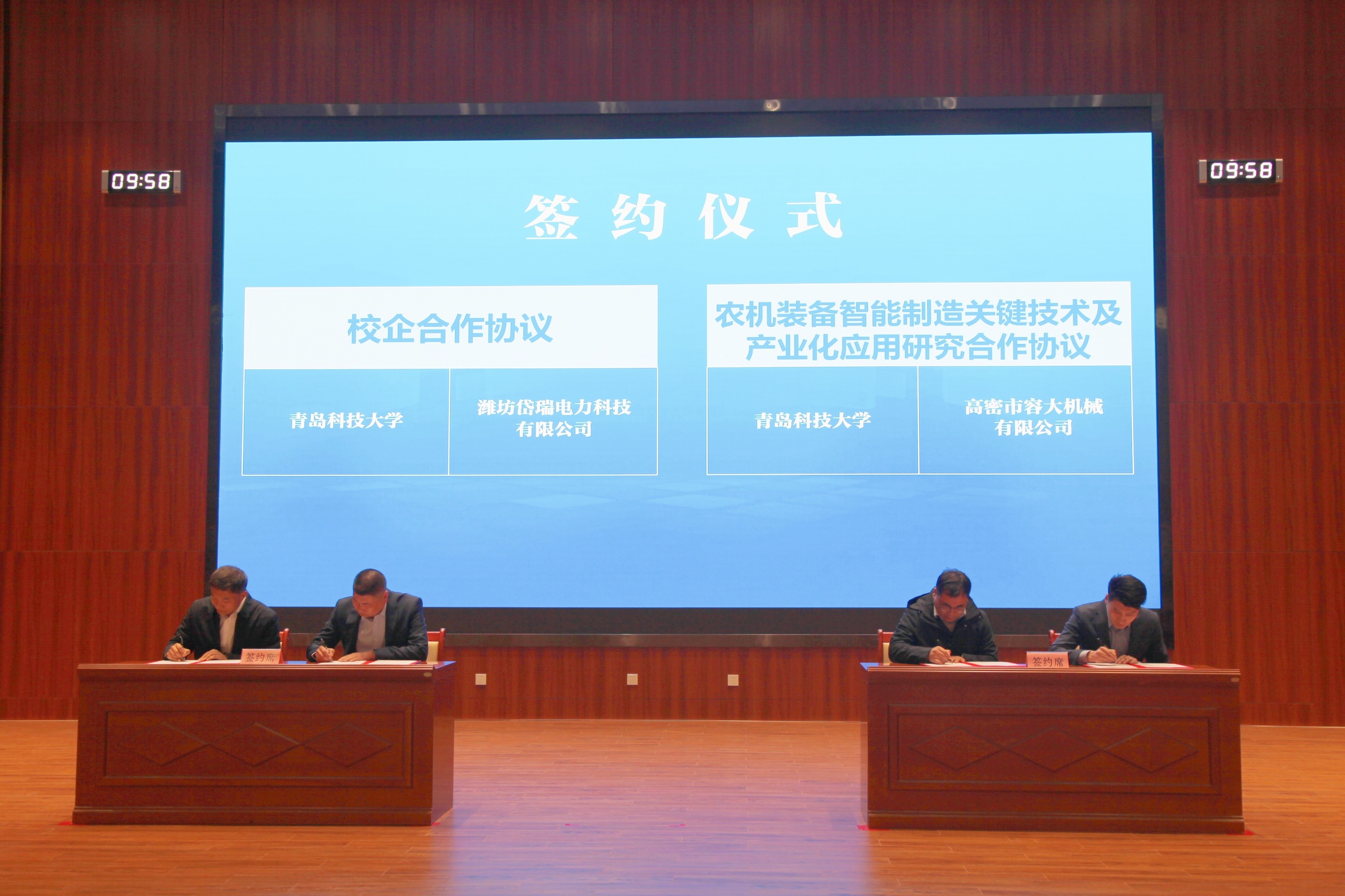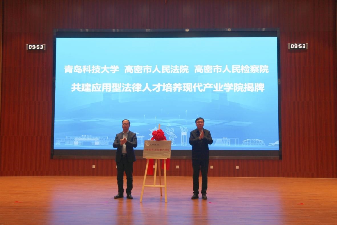 会上,校地双方代表为365完美体育-高密市人民法院-高密市人民检察院共建应用型法律人才培养现代产业学院、365完美体育国家大学科技园高密校区园区、智慧康复现代产业学院揭牌。学校代表与北京华清远见、科乐收农业机械、潍坊联通、高密天一机械、潍坊岱瑞电力、高密市容大机械6家企业分别签订了校企合作协议。学校二级教授李少香、星宇安防科技集团董事长周星余作了发言。学校14位专家围绕化工、机械、高分子、信息技术等领域开展科研成果推介,与高密市150余家重点企业进行分行业对接交流。