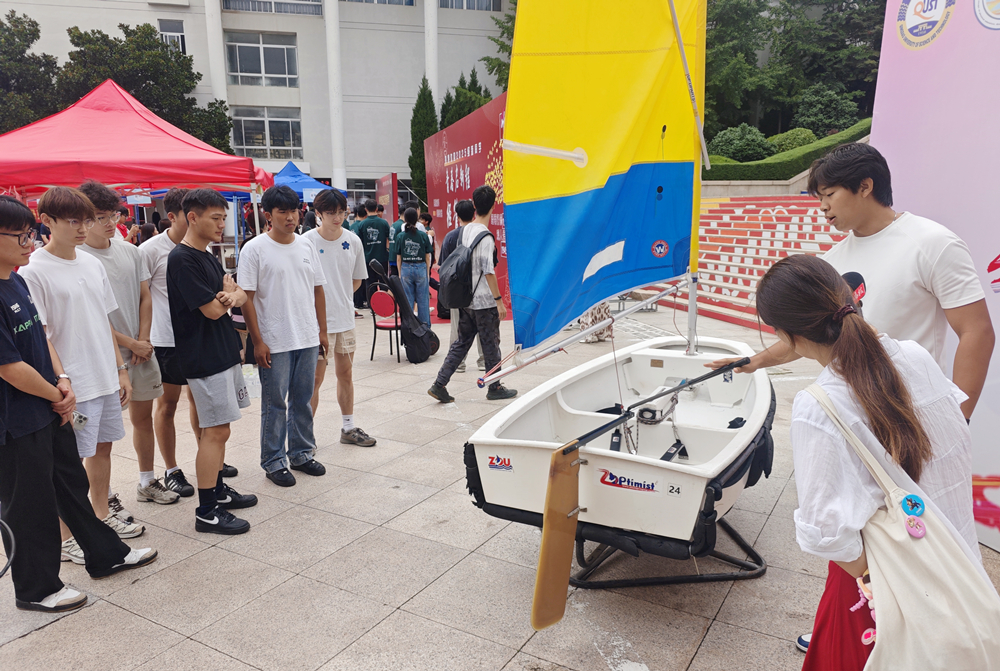 化学与分子工程学院以“青春‘化’时代,扬帆新征程”为主题,在迎新现场依据学科特色设计活动,以饱满的热情和体贴的服务迎接新生的到来。设计“你好,锌铜学!”主题喷绘拍照打卡点,营造热情的迎新氛围;“触碰化学,催化梦想”实验展演区,“蓝晶雨”“风暴瓶”等趣味化学反应吸引新生驻足体验;“指尖上的海洋馆”科普海洋知识,加强爱护海洋环境意识,真实的海洋标本让新生感受到海洋的魅力;设立师生面对面专岗、党员先锋岗、学生会志愿者等迎新服务队,传递科大温度,确保迎新工作高效有序。