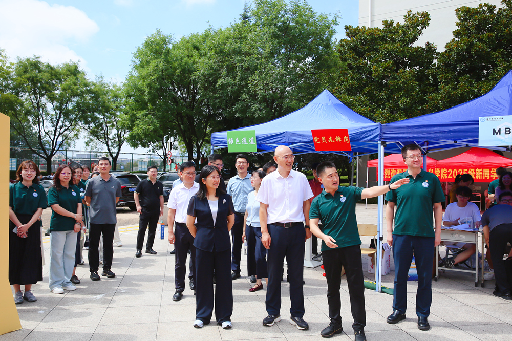 学校领导和领导班子成员杨天梅、陈克正、丁林、罗细亮、李金红、秦姣在相关部门负责人的陪同下,分别来到崂山校区、四方校区、高密校区、中德校区查看新生报到情况,与在现场办理报到手续的新生和家长亲切交流,了解各学院、校区迎新部署和特色亮点等,向在迎新一线辛苦付出的师生员工表示慰问,并希望各部门、学院、校区用心、用情、用力服务好新生,助力新生顺利开启大学生涯,为新生入学和新学期学习生活创造良好的条件和环境。