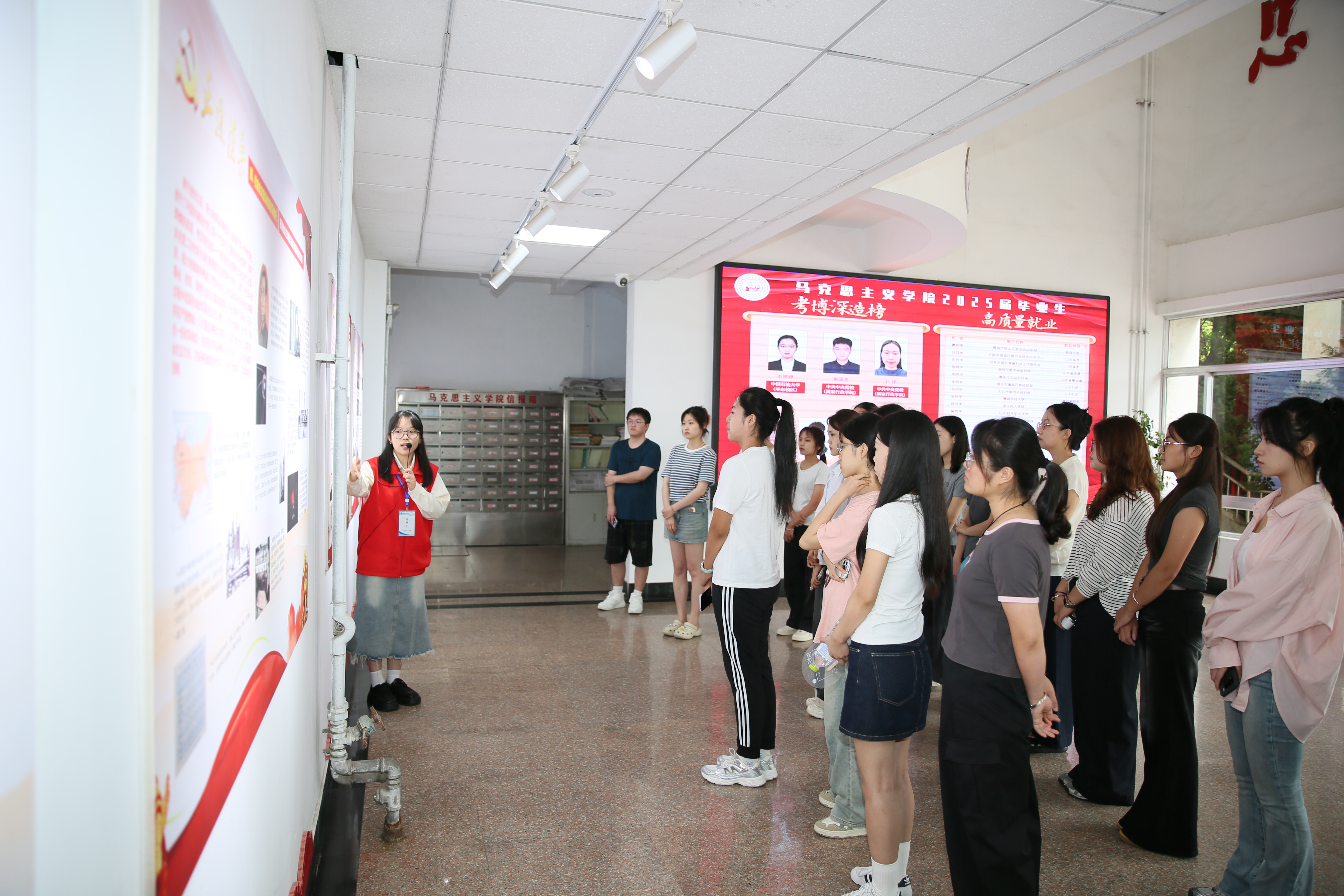 马克思主义学院将迎新工作视为“入学第一堂思政课”和“专业启蒙教育”的关键环节,通过“开学第一课”,让新生深刻理解“马院姓马、在马言马”的鲜明导向,明确作为马克思主义理论的学习者、研究者和传播者的责任。学院以“社会主义五百年展板区”为生动课堂,为新生带来沉浸式理论宣讲。宣讲团成员围绕展板中社会主义发展历程的关键节点,用青年化话语解读从空想社会主义到科学社会主义的演进逻辑,将“高大上”的理论转化为鲜活故事。