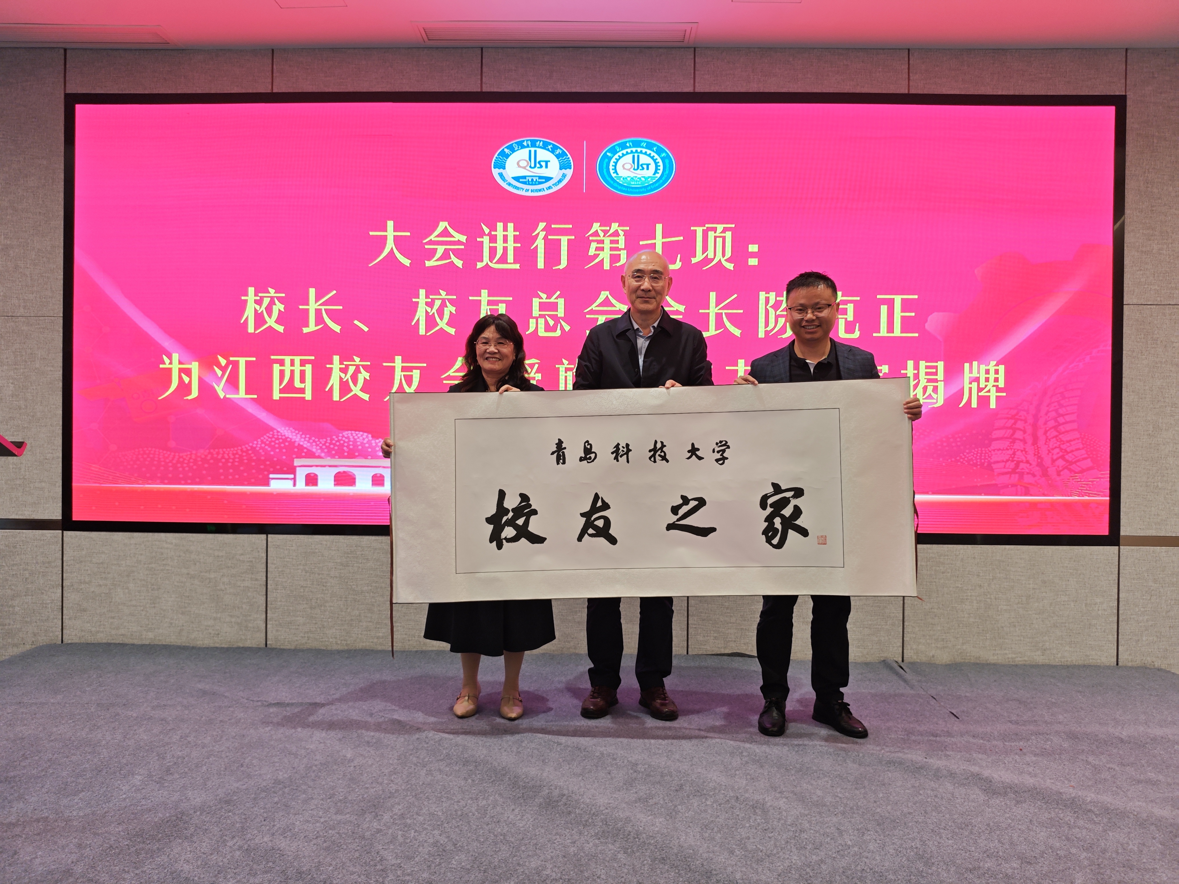 陈克正代表学校向校友们介绍了学校的总体发展状况,并为江西校友会授旗、为“校友之家”揭牌。他表示,学校建校75年来始终坚持“两服务一引领”发展战略定位:服务国家战略,天然橡胶是重要的战略物资,母校始终与国家战略同频共振,坚持走特色发展之路;服务区域发展,母校通过科技成果转化或提供核心技术支撑的上市公司已达10家,其中8家落地青岛,有力地支持了地方经济发展;引领行业进步,先后获批行业国家级工程技术研究中心、国家级工程研究中心、全国重点实验室,为引领行业高质量发展奠定了坚实基础。他回顾了十四五以来母校取得的发展成就:学科专业建设迈上新台阶,创新人才培养取得新成效,科技创新与社会服务能力实现新提升,学校总体建设呈现新风貌。同时对江西校友会第二届理事会提出三点希望:一是持续强化校友会的“磁场引力”,增强校友们的归属感和凝聚力,保证校友会工作红红火火。二是持续增加与校友们的“双向奔赴”,创新校友服务模式,丰富校友活动内容,加强校友间的交流与合作,助力校友与母校共同成长。三是持续打造校友会的“品牌特色”,切实发挥校友会平台作用,做青科大在江西的代言人,实现江西与学校在高质量发展上互利共赢。