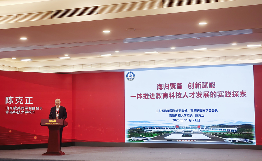 11月21日至22日,首届留学报国论坛在福建省福州市举办。全国人大常委会副委员长、欧美同学会会长丁仲礼,福建省委书记、省人大常委会主任周祖翼等出席论坛,欧美同学会党组书记、秘书长李民主持开幕式。学校校长、欧美同学会会长,山东省欧美同学会副会长、青岛欧美同学会会长陈克正受邀出席论坛,并以《海归聚智创新赋能一体推进教育科技人才发展的实践探索》为题作专题报告。