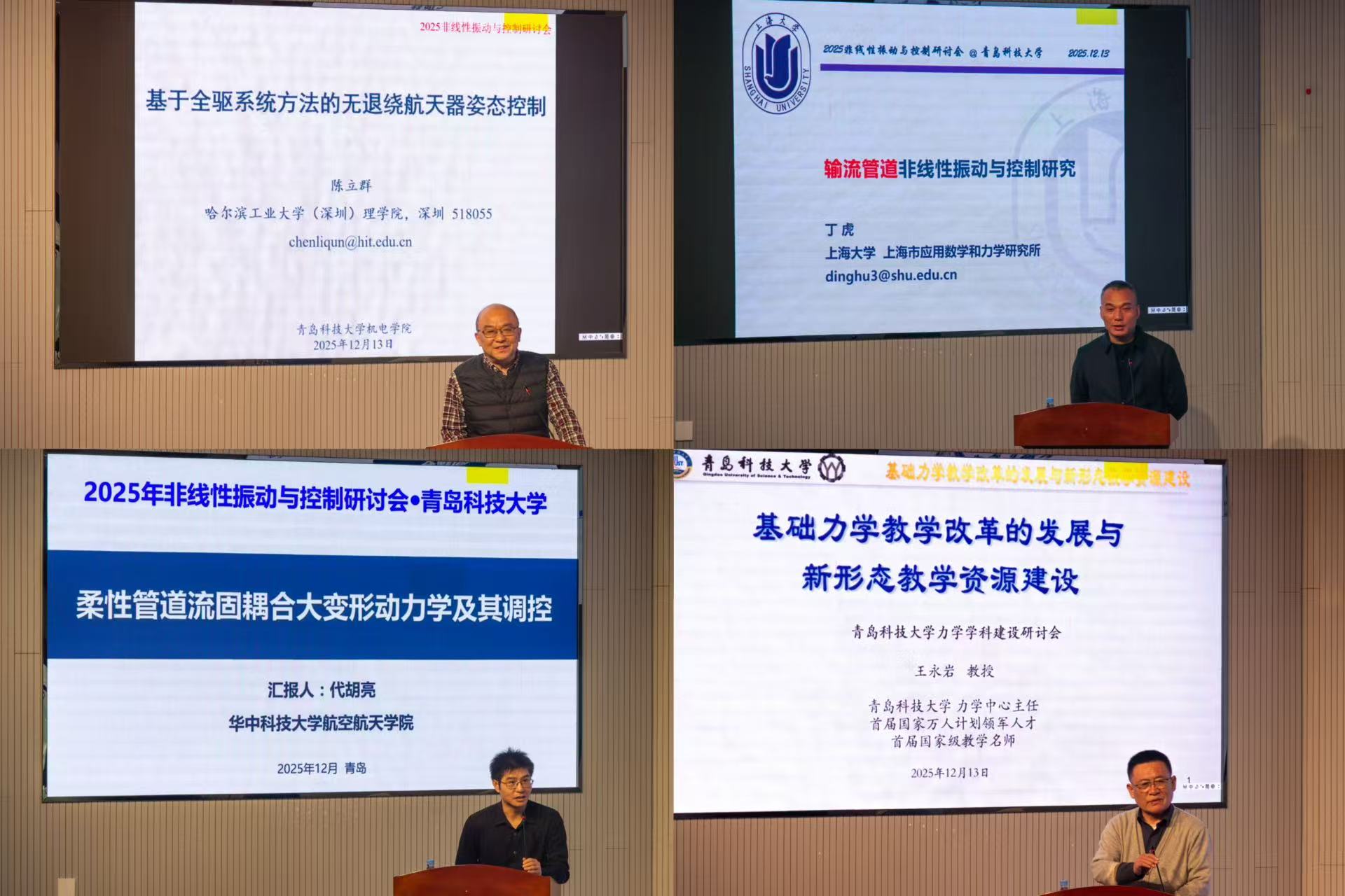为深入探讨非线性振动领域最新进展、发展趋势和面临的挑战性科学问题,拓展研究视野、促进交叉合作,推动学科发展,近日,2025年非线性振动与控制研讨会暨第二十二期“学科交叉学者沙龙”在365完美体育举办。本次会议由山东省力学学会、青岛市力学学会与365完美体育联合主办,会议邀请了非线性振动与控制领域多名资深专家学者与会,围绕非线性振动与控制理论与工程应用中的重要科学问题与未来发展趋势展开了全面交流。