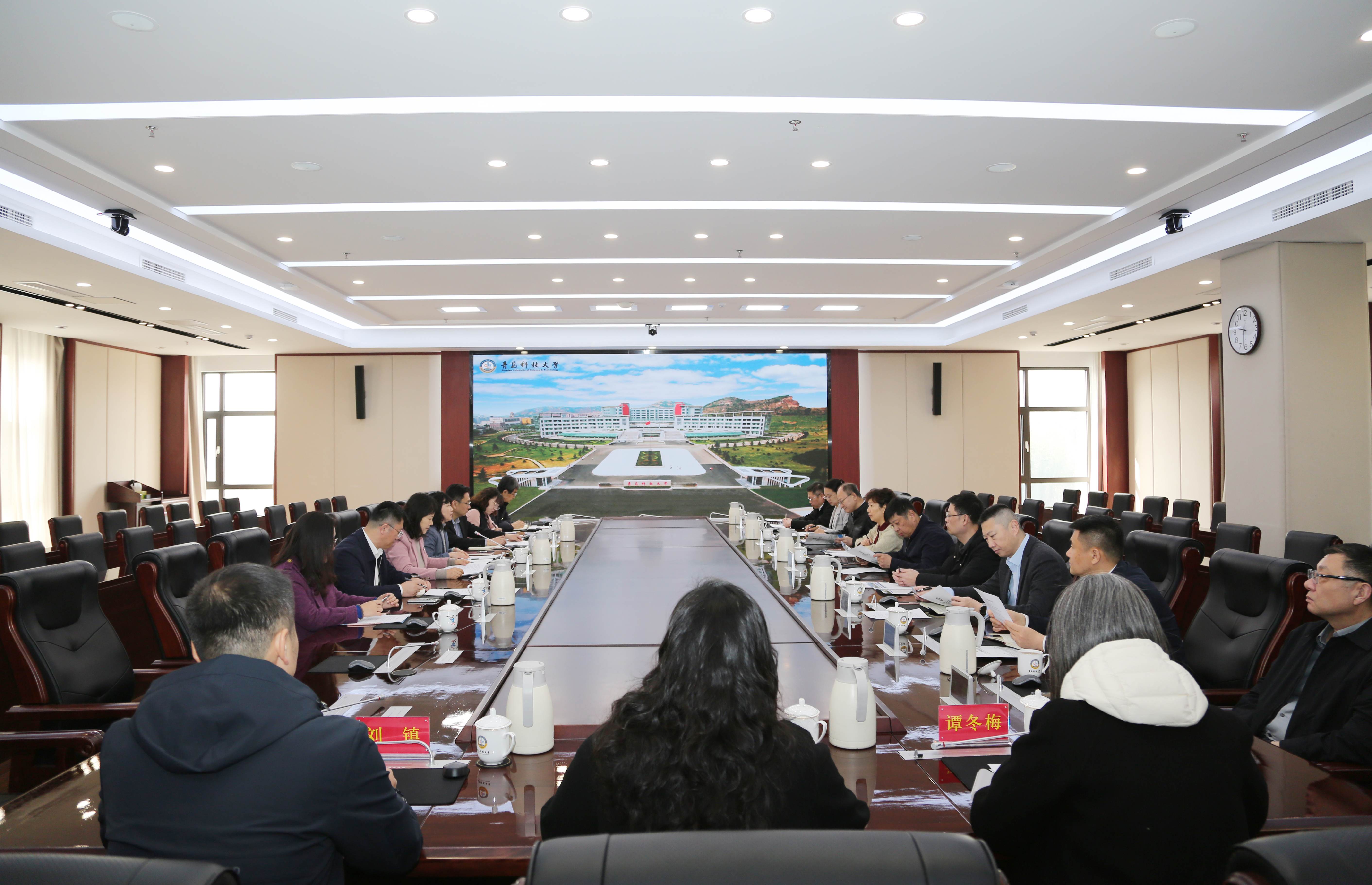 沈文青代表学校欢迎栾新一行的到来,并简要介绍了学校的历史沿革、办学特色、学科优势、政产学研融合发展等方面的基本情况,她表示,学校将继续发挥特色优势,扎实有序推进各项任务落地见效,更好地服务区域经济社会高质量发展。